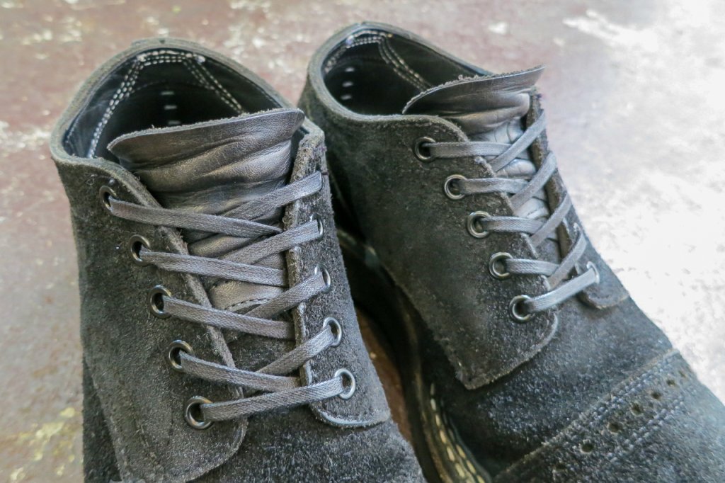 アイレットには表から裏に紐を通す。また、靴紐の交差は内側から外側に向かう紐が上に重なるように締めていく。文字にすると分かりにくいが、写真を見ていただければ一目瞭然だろう。