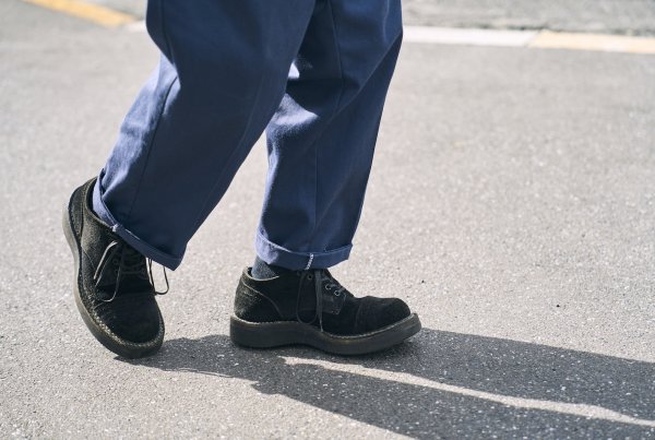 とある野外イベントにて、早朝から生憎の空模様の下でのブース搬入。となると必然、足を通すのはOxford Black ROだ。水捌けの良くない地面に深さのある水溜りができていても、ソールにハイトのあるこの短靴ならわざわざ避けて歩く必要もない。固いコンクリートの上で1日を過ごしても疲れないクッション性の高さも美徳だ。